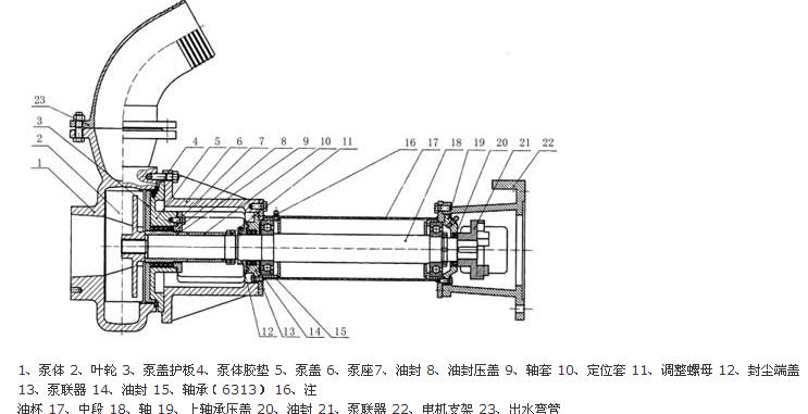 1.泵由泵體、葉輪、護板、電機架及軸承總成等部件組成。